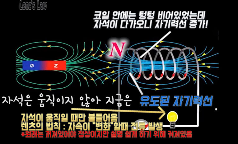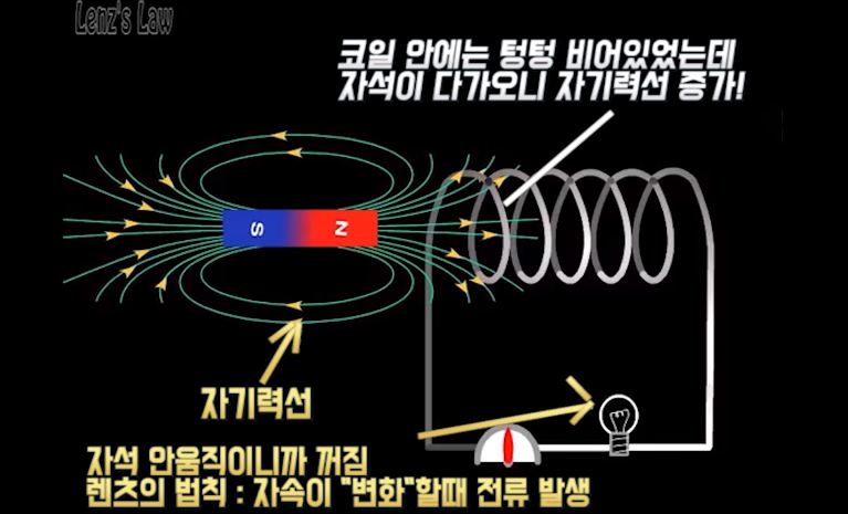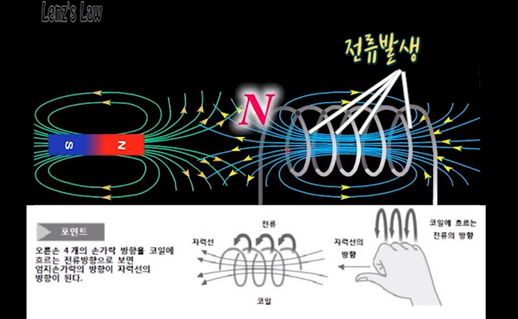전자기 유도의 의해 만들어지는 전류는 자속의 변화를 방해하는 방향으로 흐른다.
