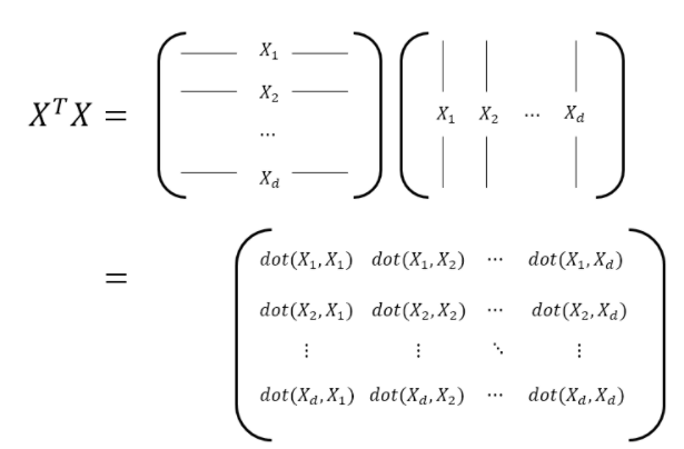 \((X^{T} X)_{ij}\)는 i번째 feature와 j번째 feature의 변동이 닮은 정도를 말해준다.