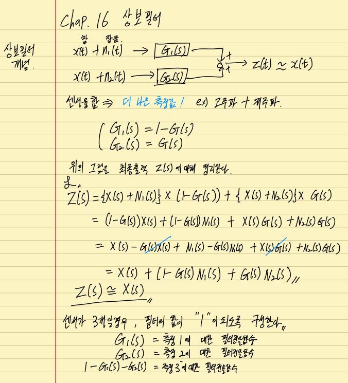 즉, 잡음이 서로 상보적일 경우 상보필터로 성능개선이 가능하다는 것이다.