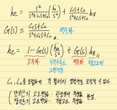 단, 상보필터에 의해 영향을 받는 신호는 각 센서의 측정 잡음 N1(S), N2(S) 뿐이다.